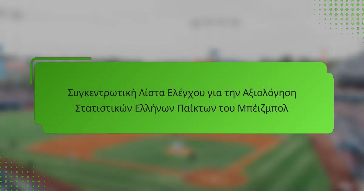 Για να αξιολογήσετε αποτελεσματικά τους Έλληνες παίκτες του μπέιζμπολ, εστιάστε σε βασικά στατιστικά που αποκαλύπτουν την απόδοσή τους και τις συνεισφορές τους στο παιχνίδι. Απαραίτητες μετρήσεις περιλαμβάνουν το μέσο όρο χτυπημάτων, το ποσοστό βάσεων, το ποσοστό χτυπημάτων και διάφορα στατιστικά για τους ρίπτες, τα οποία μαζί παρέχουν μια ολοκληρωμένη εικόνα των ικανοτήτων ενός παίκτη.